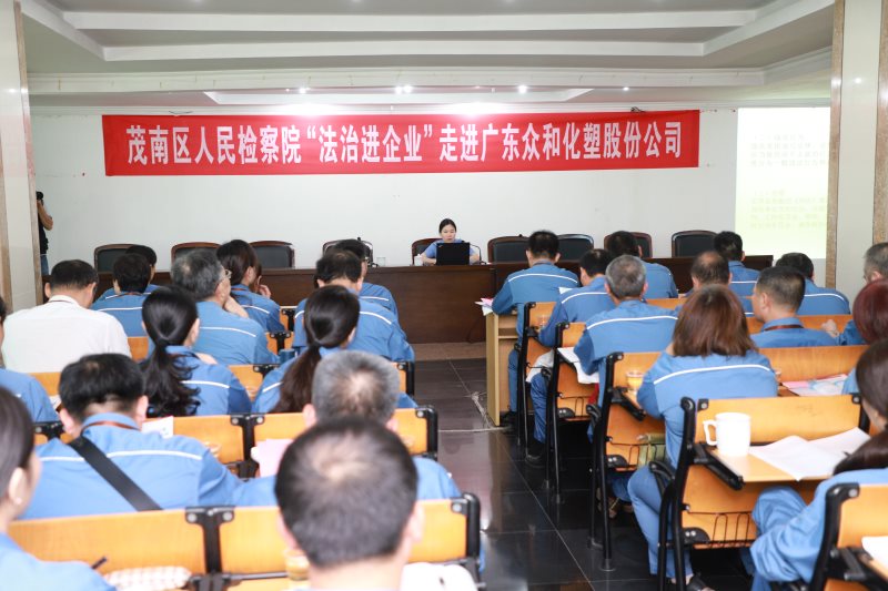 为公司职工普及法律知识,提高公司及职工依法诚信经营,维护自身合法权益的意识和能力,7月19日上午,茂南区检察院到公司开展了“法制进企业”现场法律宣传活动。公司副总经理兼总会计师辜嘉杰,茂南区检察院党组成员、副检察长阮志强及十多名检察官参加本次活动。