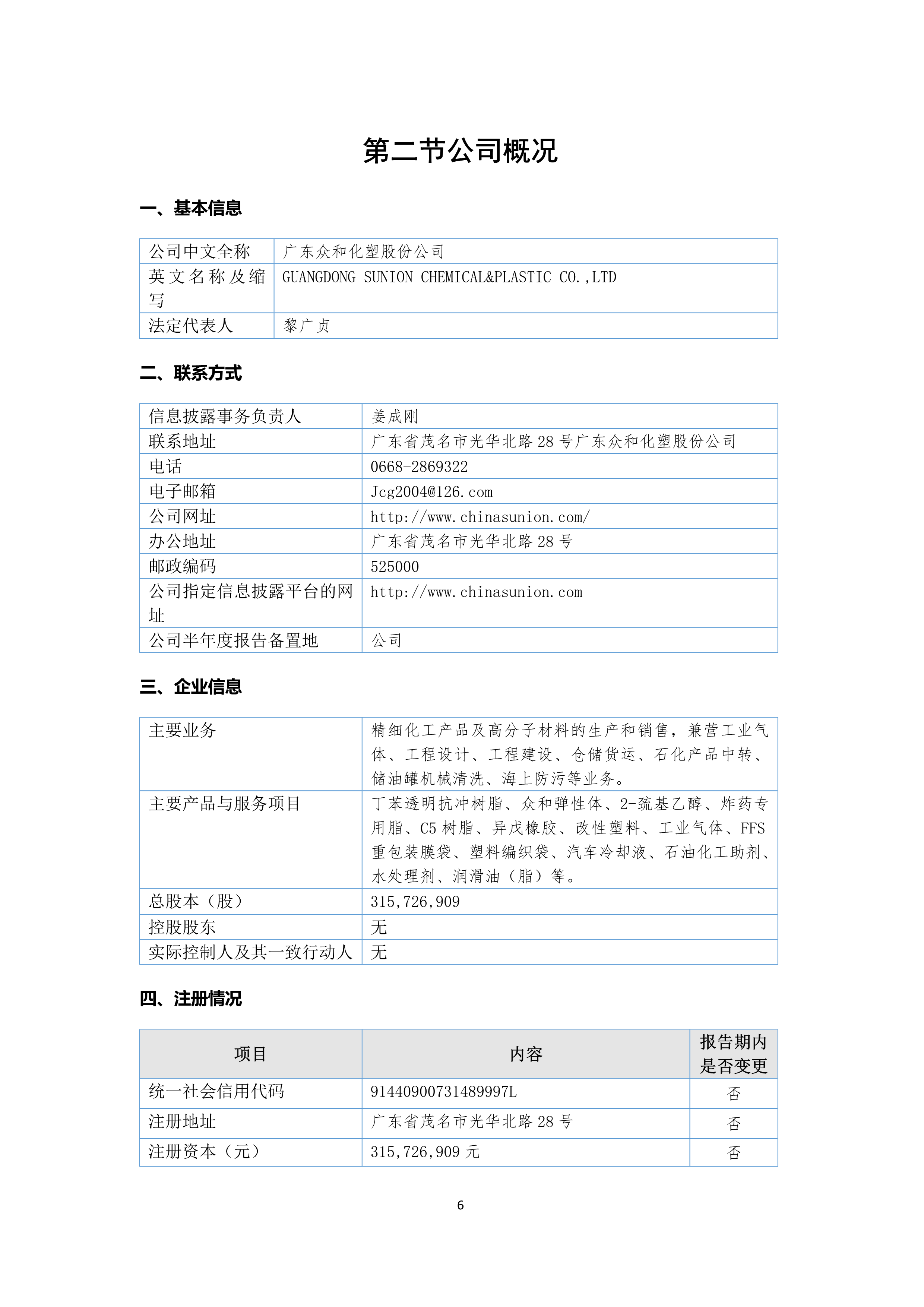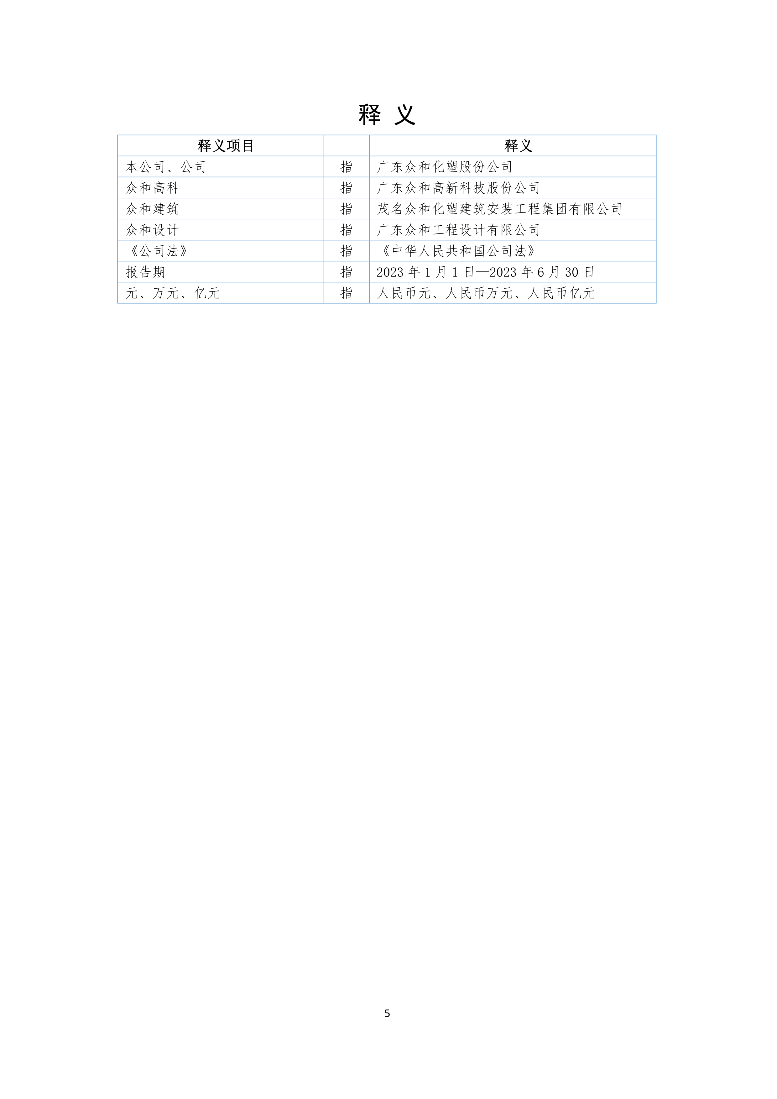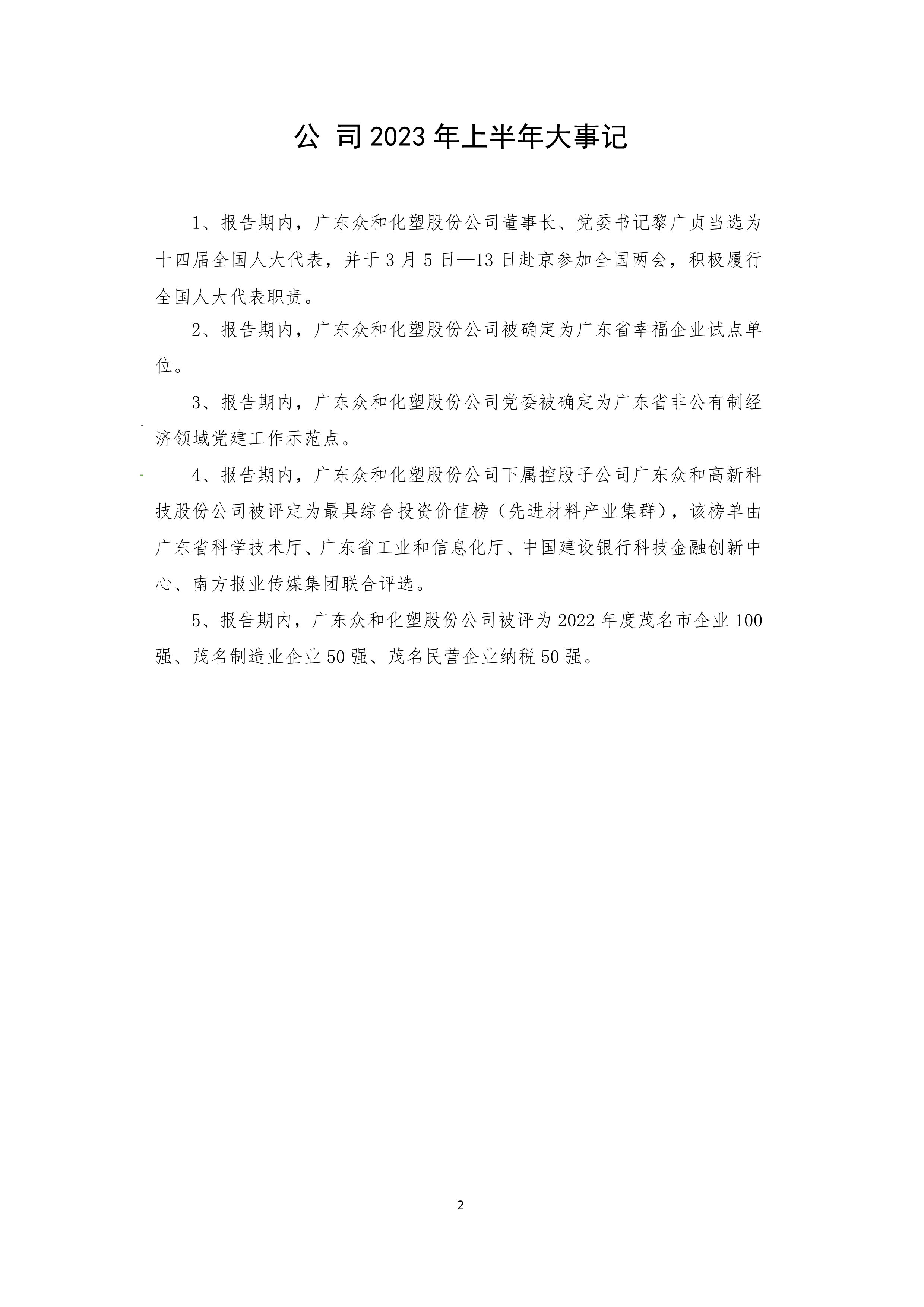 广东众和化塑股份公司 2023年半年度报告